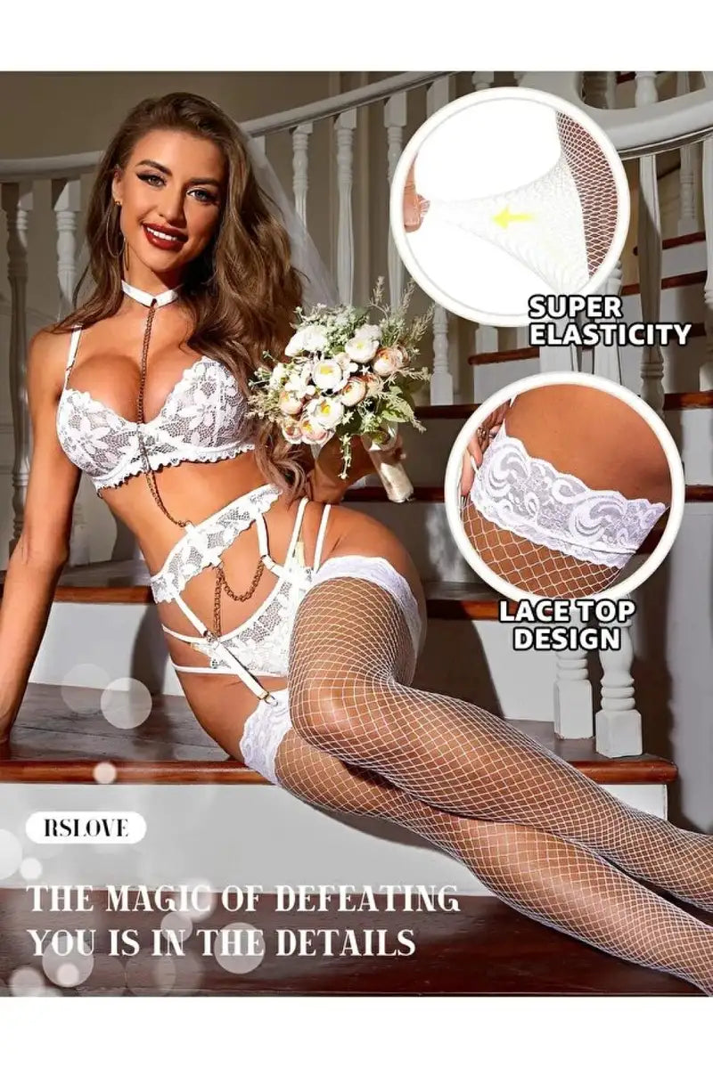 Kadın Beyaz File Silikonlu Jartiyer Çorabı