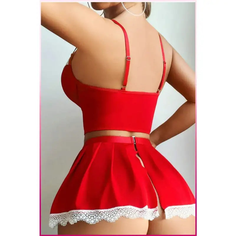Kırmızı Fırfır Detaylı Özel Tasarım İç Giyim Seti
