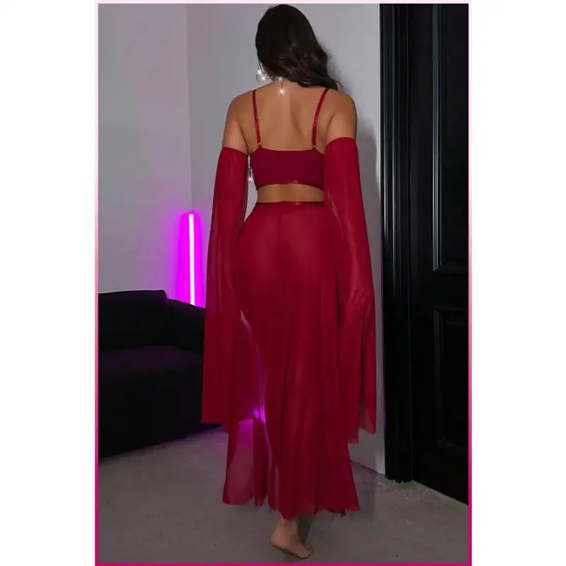 Bordo Pul Aksesuarlı Tül Etekli Kadın Seksi Gecelik