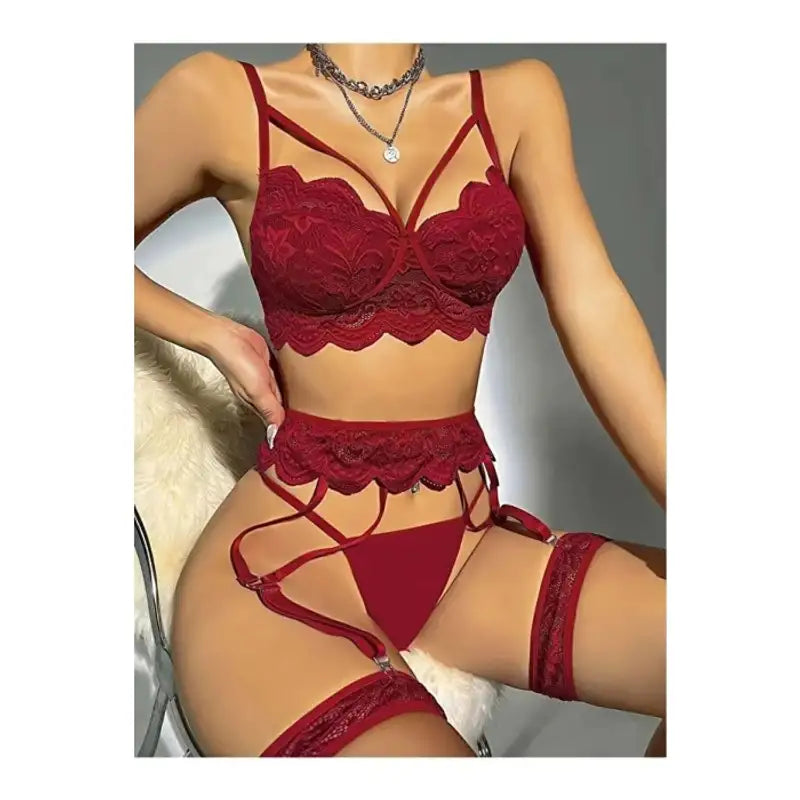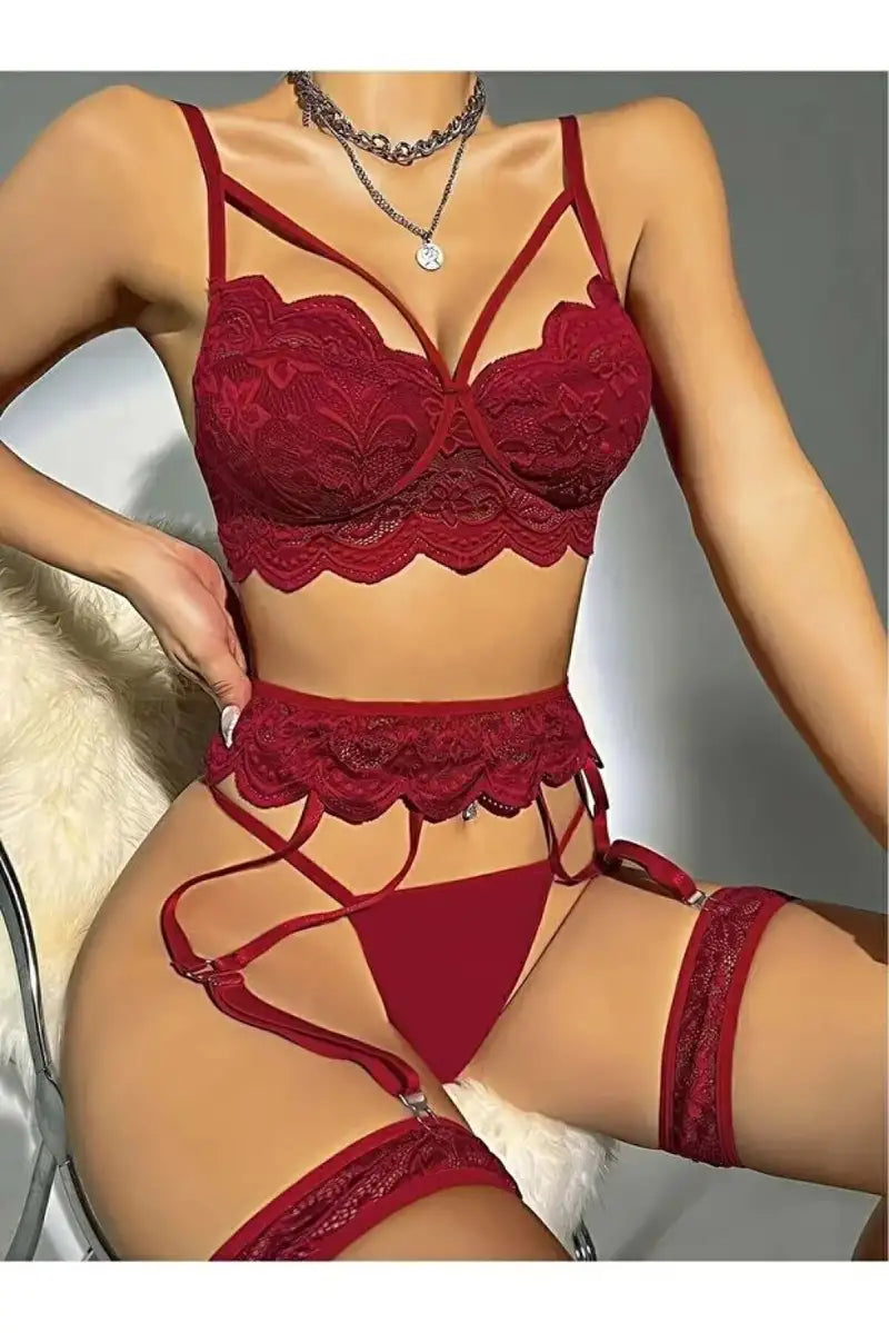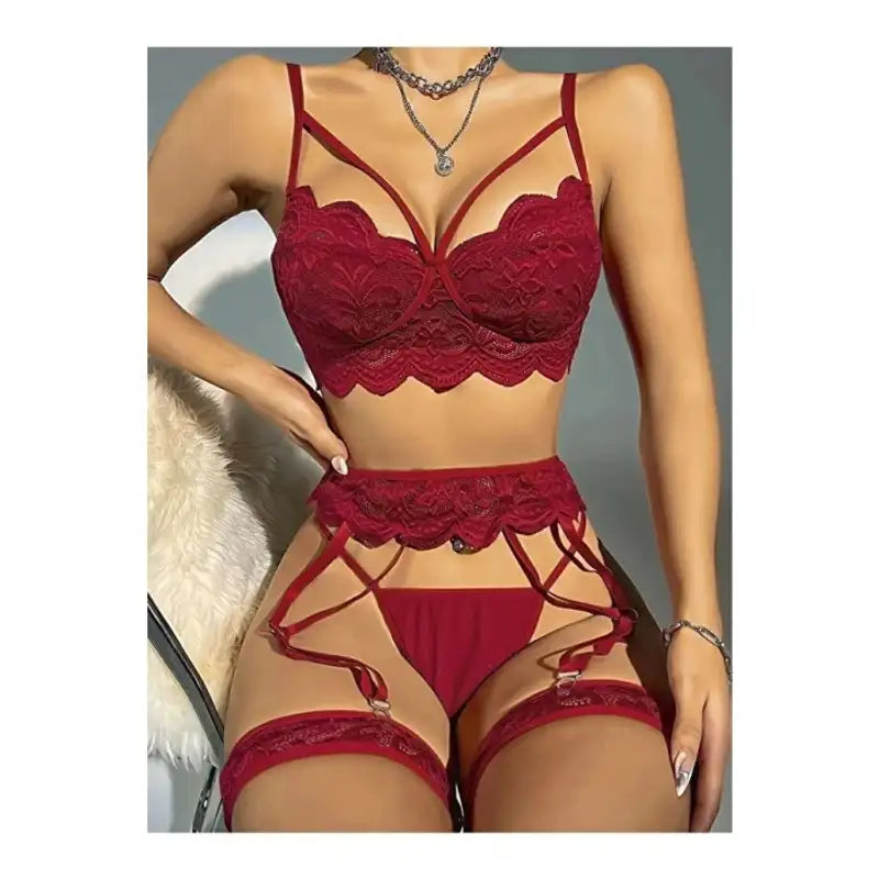 Kadın Bordo Dantel Detaylı Jartiyer Takım