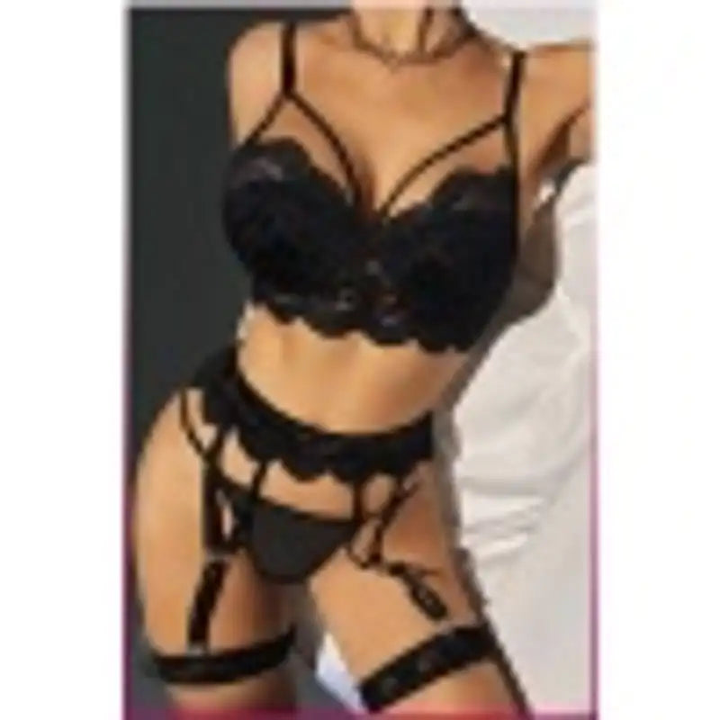 Kadın Siyah Dantel Detaylı Jartiyer Takım